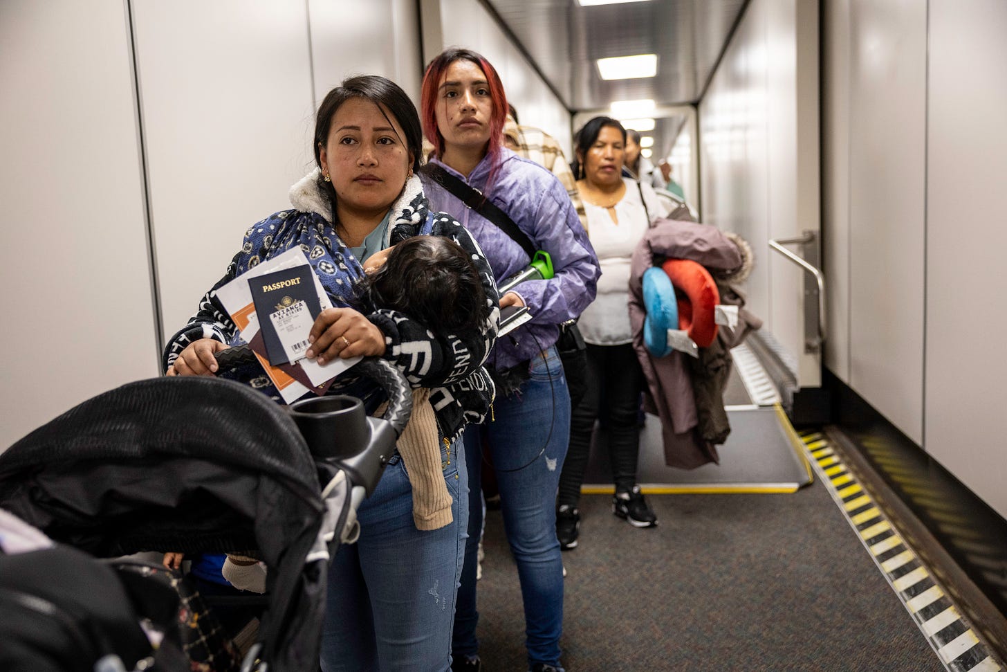 It’s actually really easy to understand: the mother was an illegal alien and was being deported. Rather than separate her from her children, immigration agents allowed her to take her children with her to her home country.