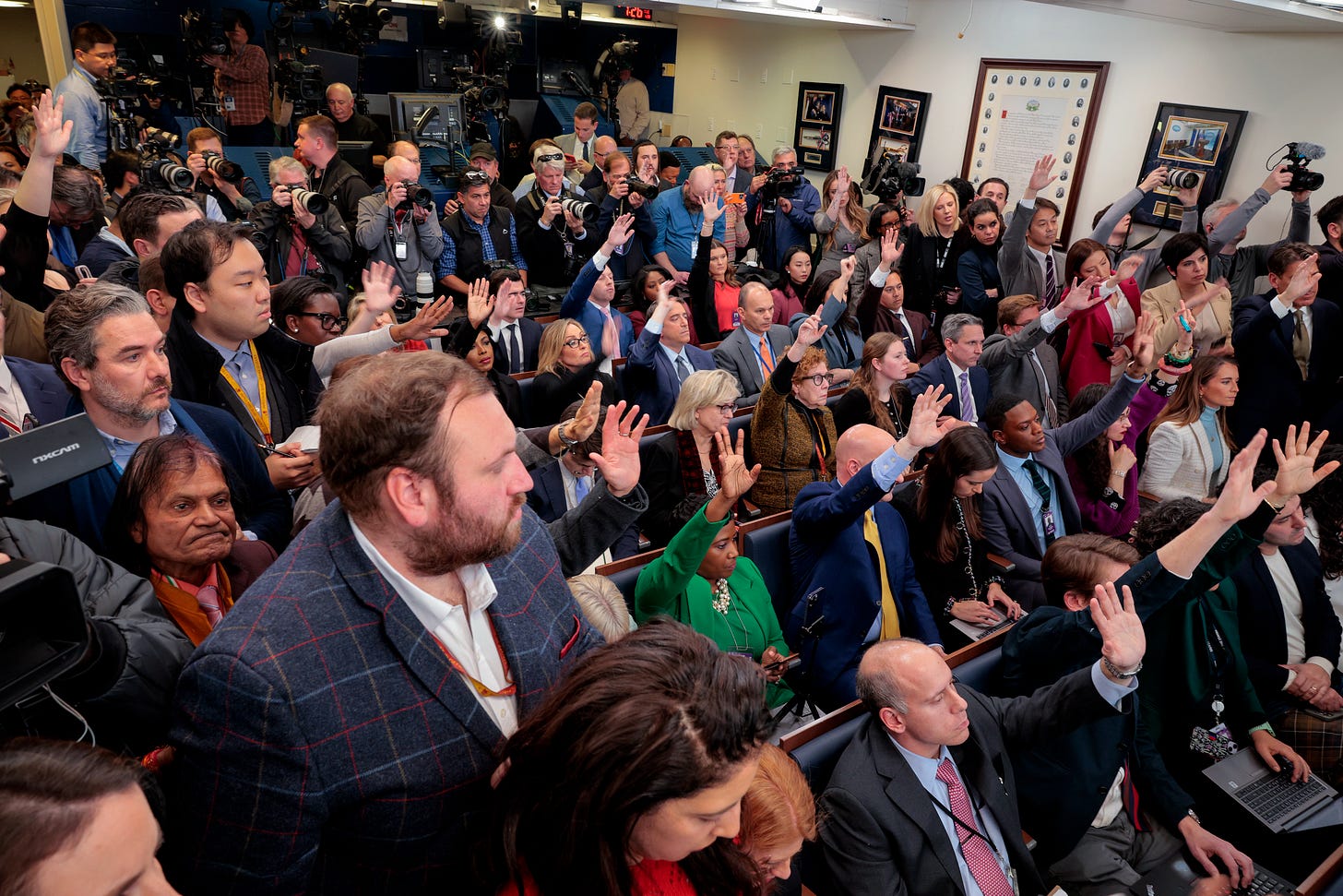 Karoline Leavitt’s first press briefing was intimidating. I’m sure it was for her too. The small room was packed in a way I had never seen it before. I made sure to wear bright colors to be spotted easier, and I bought a child’s booster seat to give me some height over the rows of reporters in front of me.