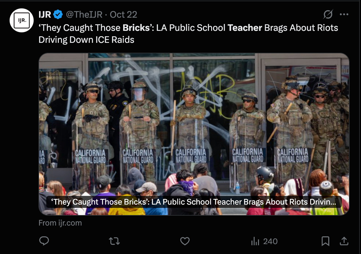 People who believe it’s okay to throw bricks at law enforcement should not be in positions to influence children.