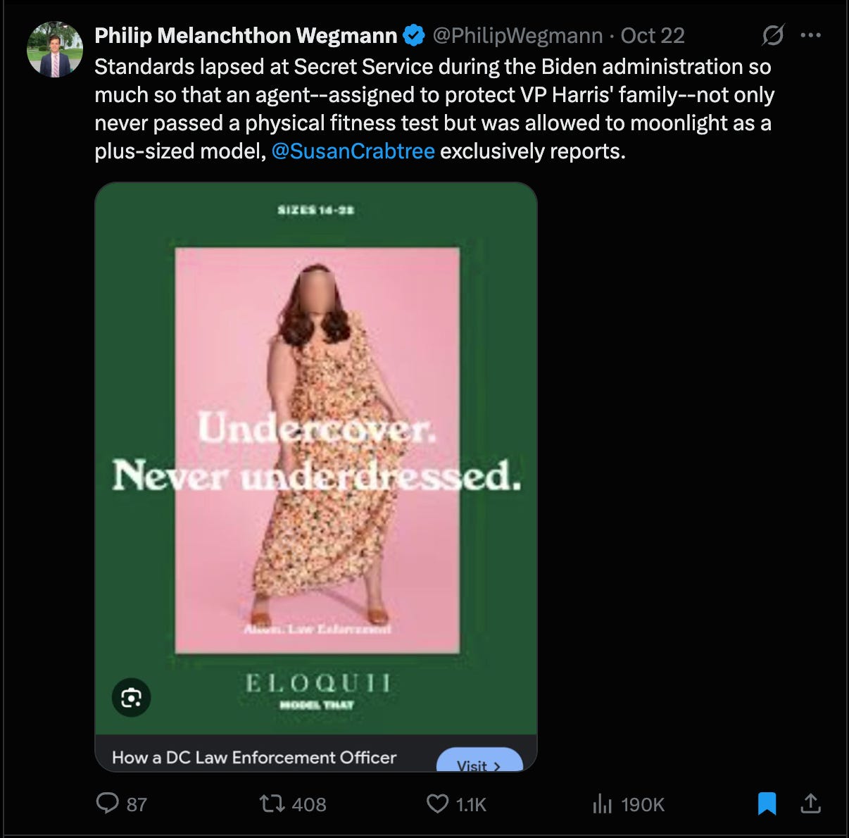 Fat women who can’t pass physical fitness tests should not be providing security for heads of state.