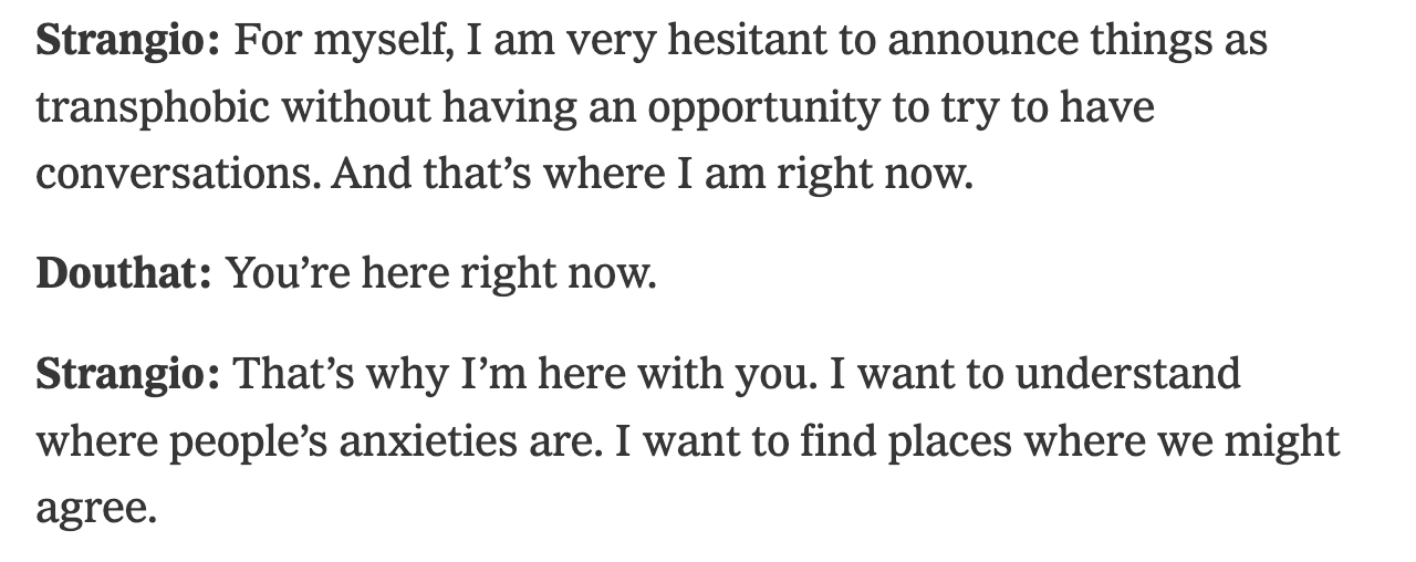 Strangio did a sit-down with The New York Times’ Ross Douthat.