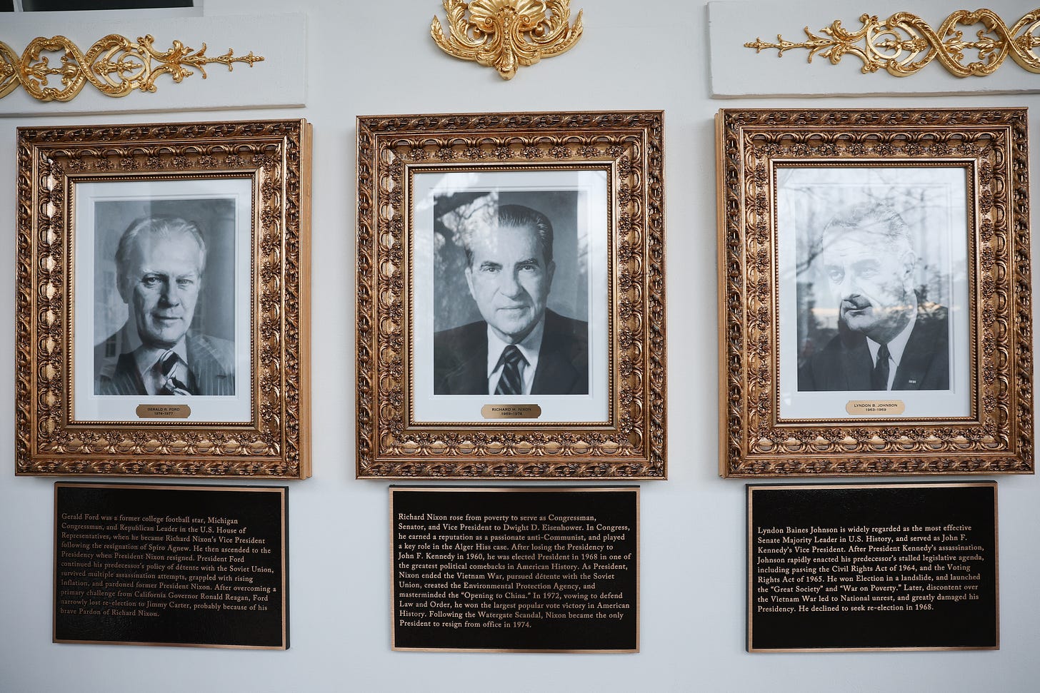 The White House announces new plaques have been installed underneath presidential portraits. Trump’s mentioned in the oddest places. He’s somehow mentioned in Andrew Jackson’s plaque.