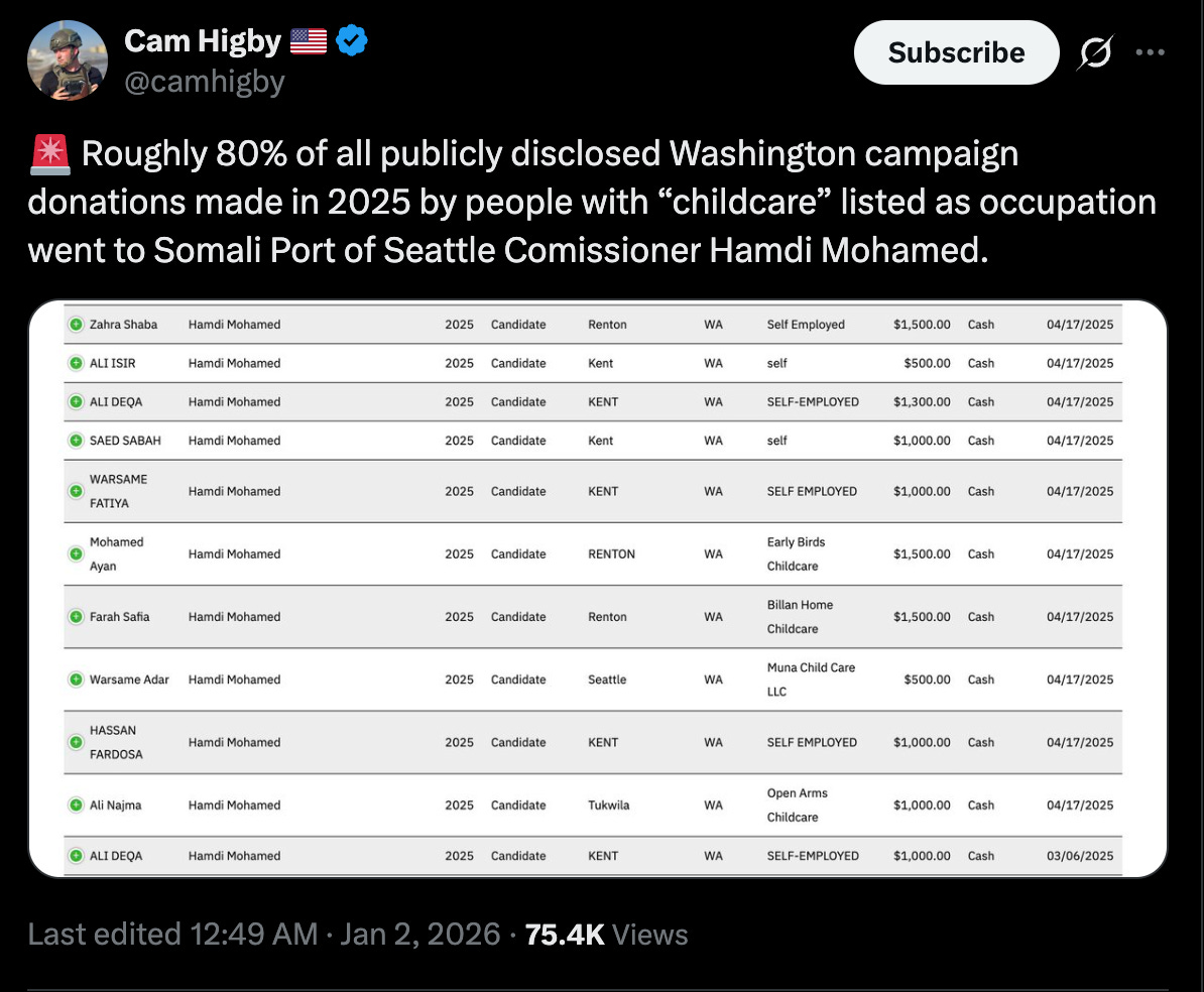 Nick Shirley’s video of Somali daycares and health care providers has eclipsed 140 million views on Twitter. I’m not even checking his YouTube, you get the point.