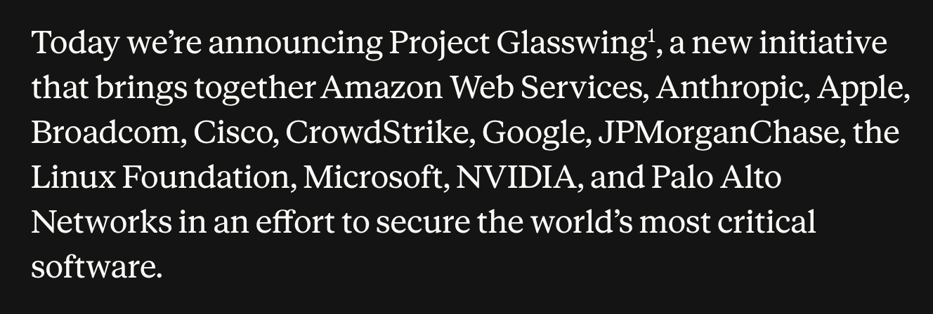 They want to identify these weaknesses as fast as possible so they can be shored up prior to any other AI becoming as proficient as Claude. Notice it includes the biggest banking entity in America.