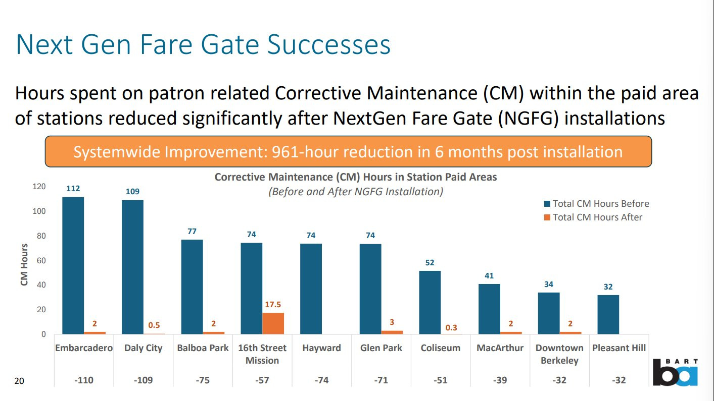Since installing the new gates, BART has seen an enormous reduction in “[h]ours spent on patron related Corrective Maintenance … within the paid area of stations.”